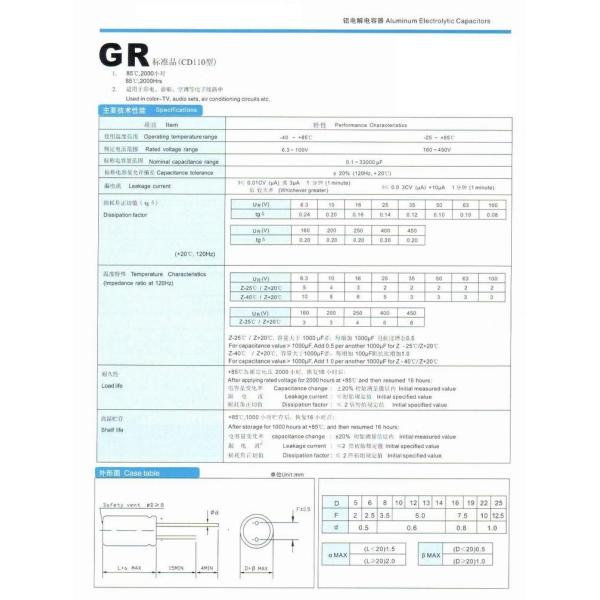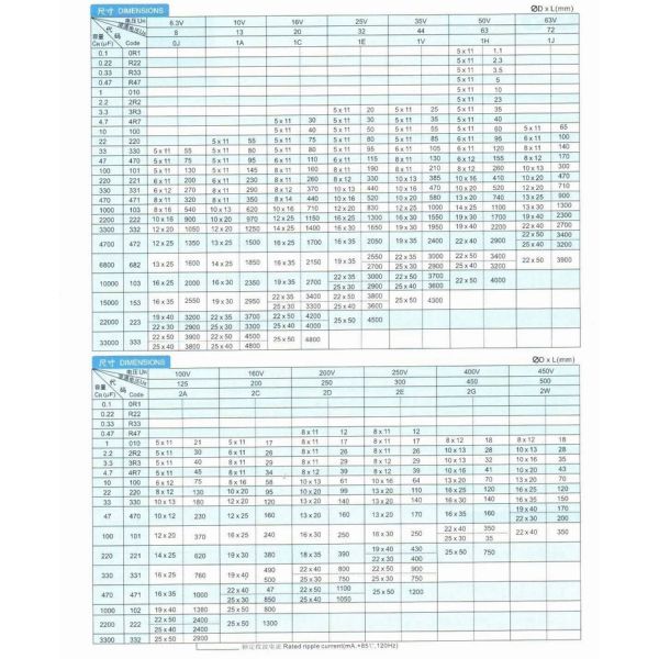 Voltage : 6.3-100V 160V-450V